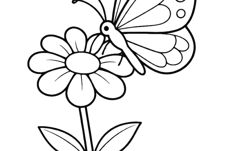 Butterfly on Flower Coloring Page