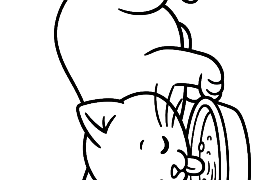 Kitten Cat Drinking Water Coloring Page