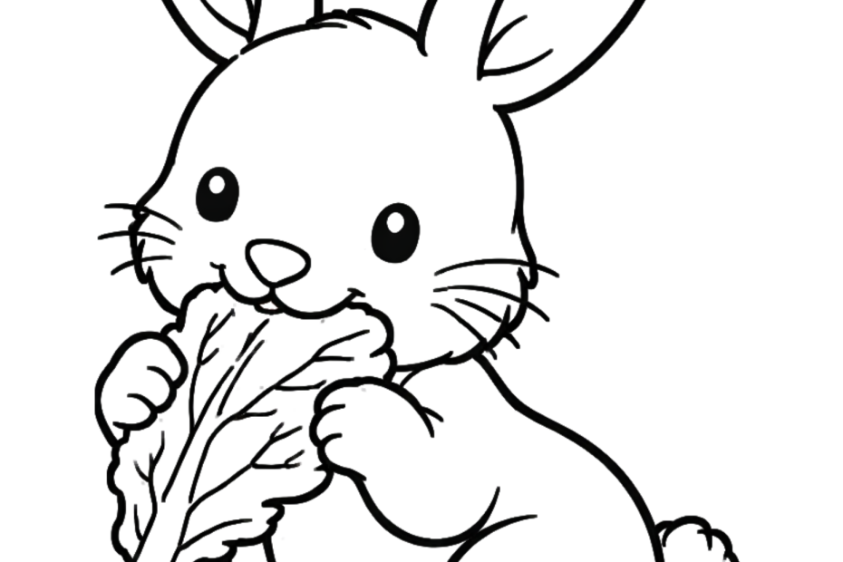 Bunny Rabbit Eating Lettuce Coloring Page